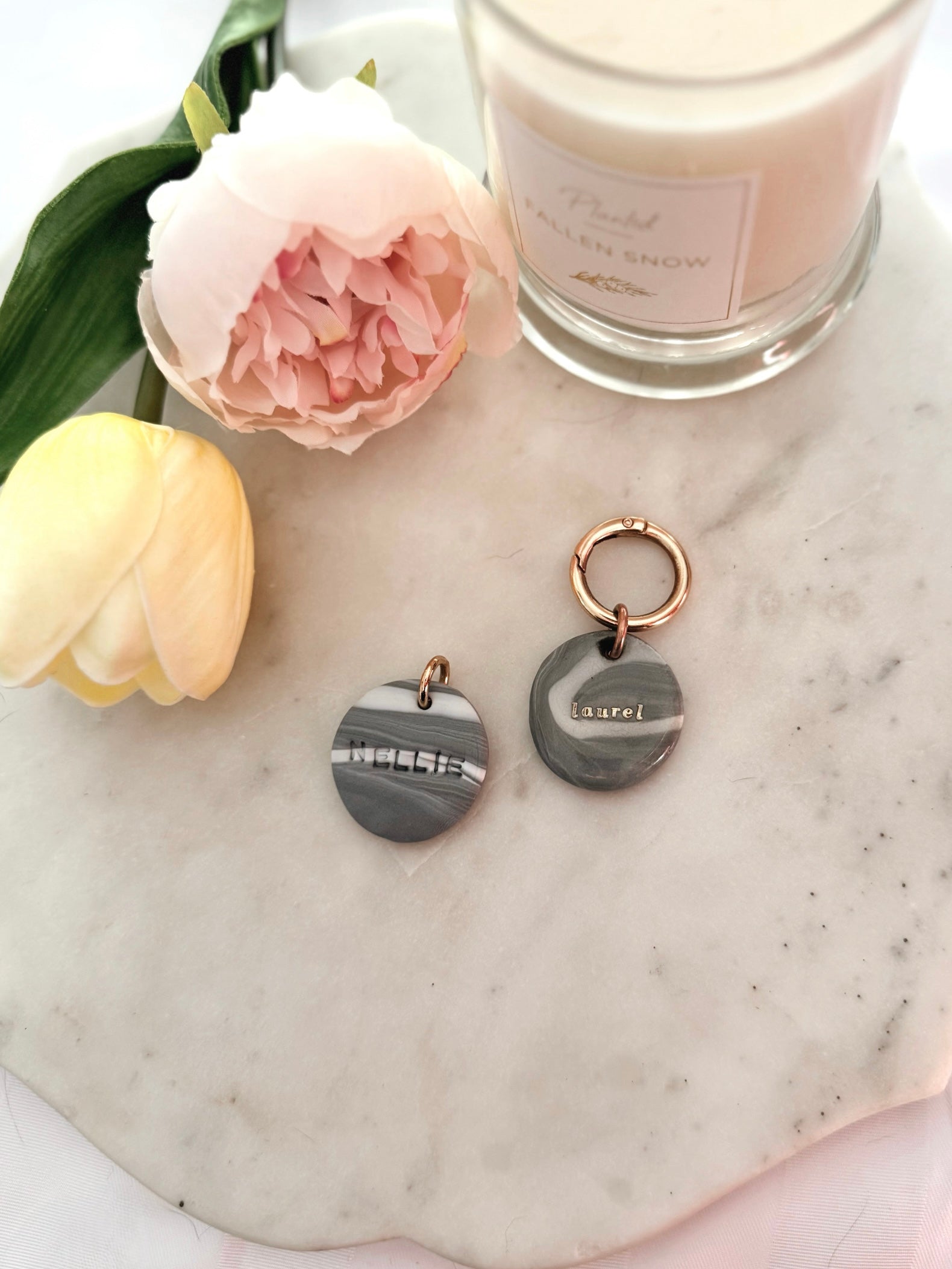 Circle polymer clay tag.